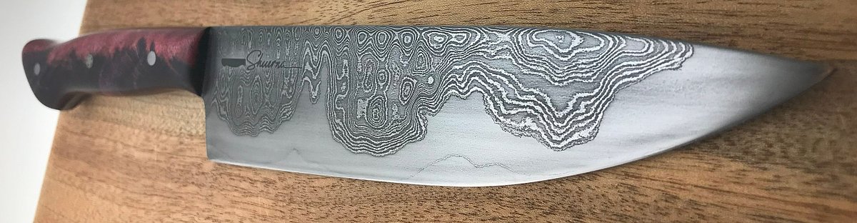 Damascus steel chef knives are a remarkable fusion of performance and beauty, crafted with meticulous care to ensure exceptional quality. Each knife is a unique masterpiece, showcasing a distinct and intricate pattern that not only delivers a precision tool in the kitchen, but a piece of art that will get you excited about prepping your next meal. The layered steel used in their construction provides excellent edge retention, allowing for prolonged use without the need for frequent sharpening. Moreover, the thoughtfully designed handle is ergonomically crafted to ensure a comfortable grip, which supports extensive use in the kitchen. This makes these knives an ideal choice for both professional chefs who demand top performance and home cooks looking to elevate their culinary experience.